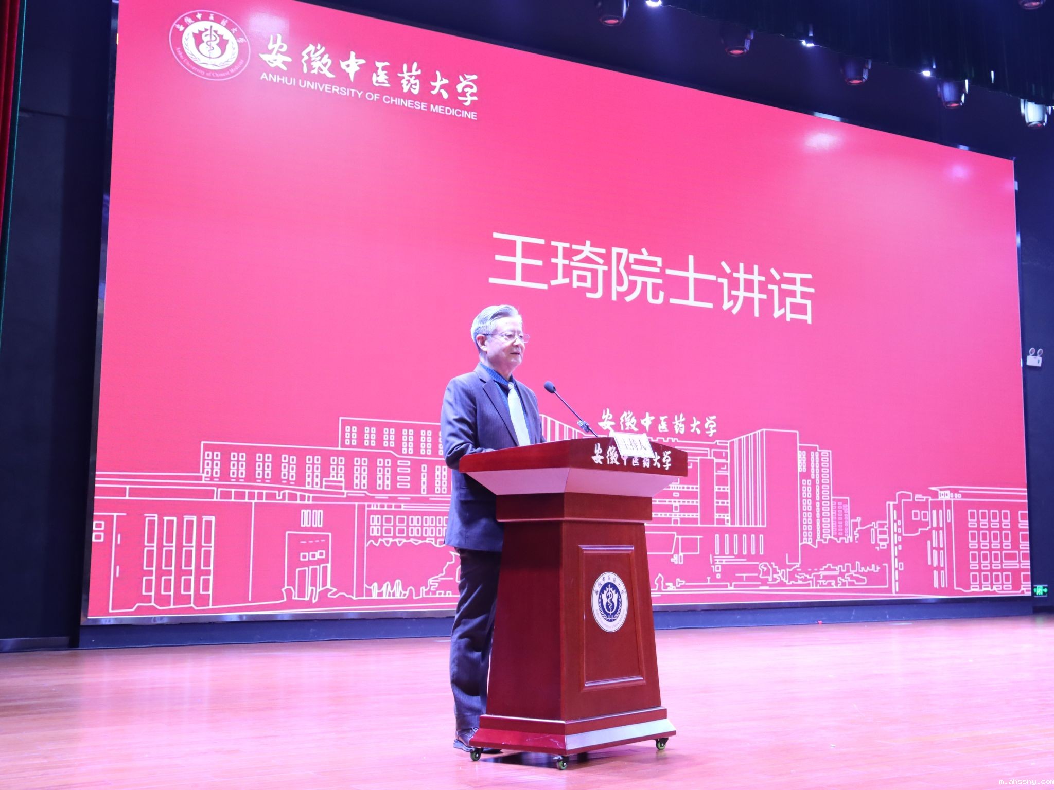 11月25日下午,我校举行王琦国医大师“精英班”开班仪式。中国工程院院士、国医大师、学校荣誉校长王琦,学校党委书记谢瑞瑾,党委副书记、校长许钒,学校领导石金明、聂久胜、桂双英,我校杰出校友、北京中医药大学教授骆斌,王琦国医大师传承工作室秘书梁雪,学校党委常委罗绍明、田磊出席开班仪式。学校全体处级干部、校本部科级干部,学校五类以上人才,王琦国医大师“精英班”全体学生(2024级5+3班),2023级新安医学特色班全体学生参加开班仪式。开班仪式由校长许钒主持。